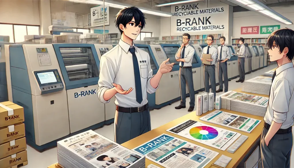 なります。Bランク資材は印刷用紙への再生は難しいですが、板紙として再利用されるため、資源循環に貢献します。用途や機能に合わせて選べば、十分に環境配慮型の印刷物になります。