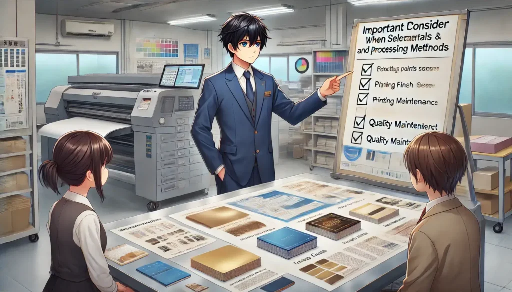 もう一つのポイントは、デザイン段階から資材選定を意識することです。印刷会社と発注者が早い段階で話し合い、製品の用途、流通方法、廃棄後の扱いまで想定しておくことで、より適切なランクを選ぶことができます。これにより、デザインや印刷工程を途中で変更する必要が減り、コストや納期の安定にもつながります。