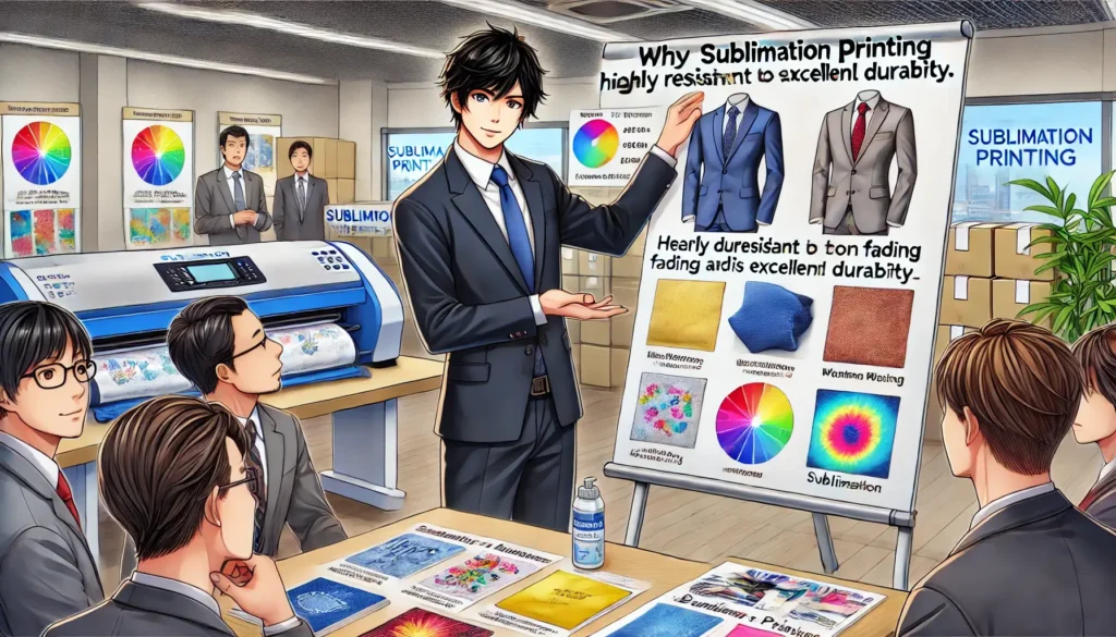 インクの色素が素材の内部に浸透し、分子レベルで固着するためです。摩擦や洗濯でも表面から剥がれず、紫外線の影響も受けにくいため、長期間鮮やかな色を維持できます。スポーツウェアや屋外用のバナーでも効果が発揮されます。