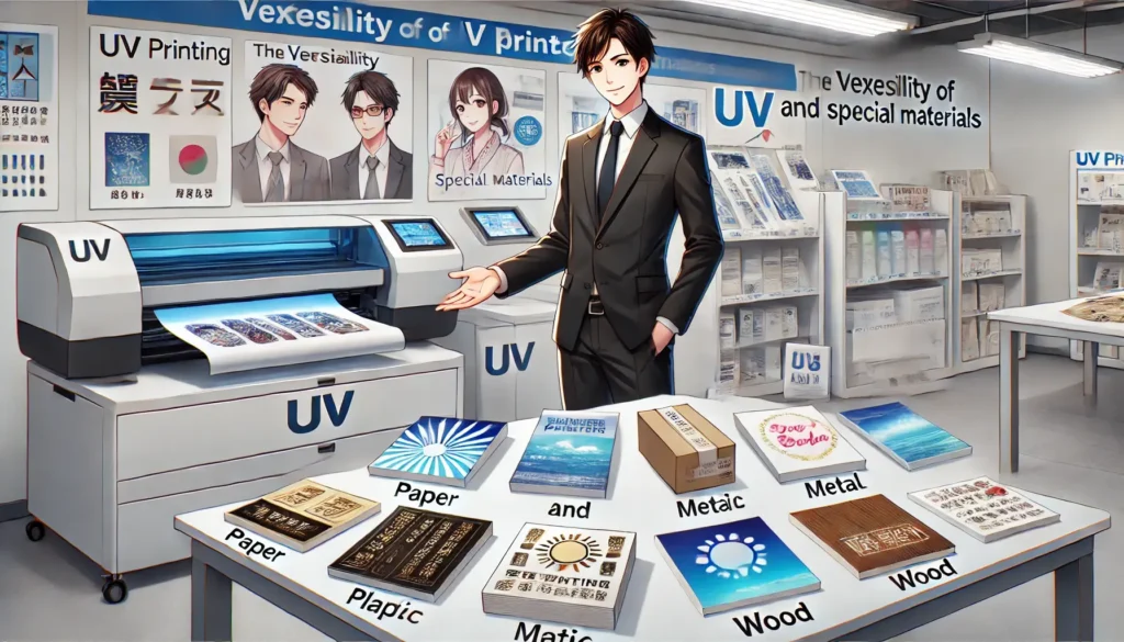 このように、UV印刷は紙以外の多種多様な素材に対応でき、その仕上がりも高品質で長期保存に適しています。加えて、印刷後すぐに加工や出荷が可能なため、生産工程の効率化にもつながります。