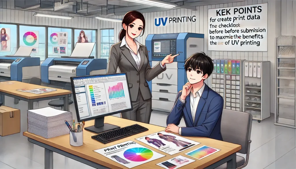 このように、UV印刷の仕上がりは単に印刷方式の特性だけで決まるものではなく、機械の状態、資材の選定、環境管理、そして現場でのノウハウが組み合わさって初めて高い品質が実現します。次のブロックでは、UV印刷の魅力を最大限活かすために必要な印刷データ作成時のポイントと、入稿前に確認すべき事項について詳しく解説します。