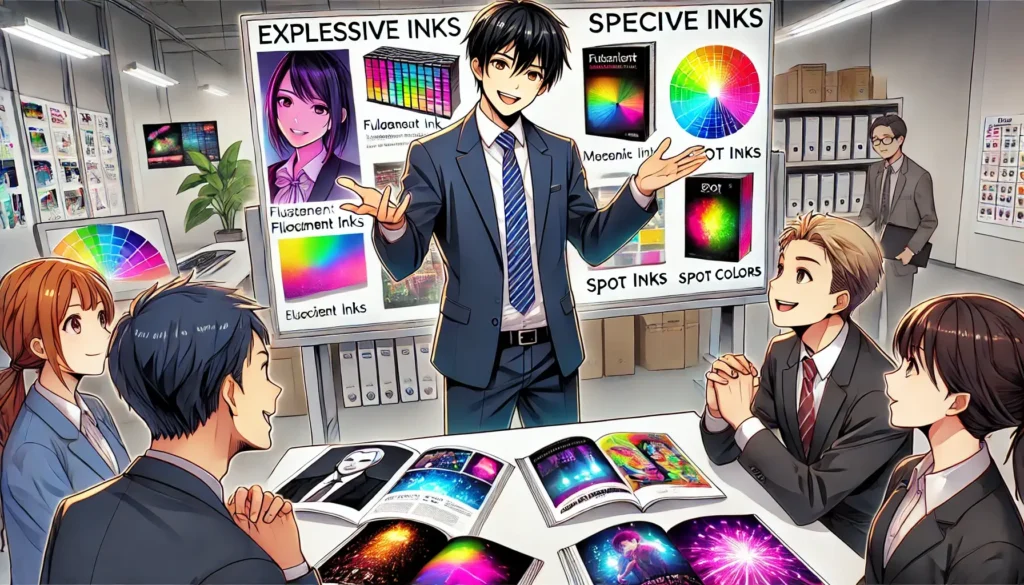 蛍光インキや特色インキは、それぞれ異なる魅力を持ちながらも、共通して「印刷物に特別な価値を加える」という役割を果たしています。蛍光インキは視覚的なインパクトと目立つ力を発揮し、特色インキは正確な色の再現や高級感の演出を可能にします。これらを適切に使い分けることで、印刷物は単なる情報伝達の媒体を超え、ブランドを象徴する存在や、購買意欲を刺激するツールへと進化するのです。