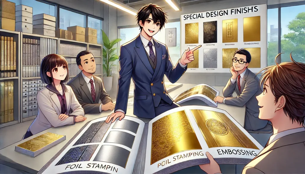 また「予算と納期」についても早い段階で相談しておくことが欠かせません。特殊印刷は通常の印刷に比べて工程が増えるため、どうしてもコストや制作期間がかかりやすい傾向にあります。例えば箔押しやエンボス加工は専用の金型を作る必要があるため、その分コストが上乗せされますし、納期も数日から数週間長くなる場合があります。そのため、予算に限りがある場合には優先順位を決めて、どの加工を残すか、どこをシンプルにするかを調整するとよいでしょう。