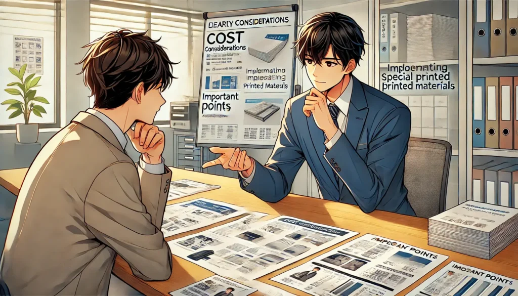 導入の際には、目的の整理やデザインデータの準備、素材の選定、印刷会社との密なコミュニケーションが欠かせません。特殊加工には専用の工程や金型が必要になる場合が多く、コストや納期が通常印刷よりも増えることがあります。しかし、加工範囲を限定したり、環境に配慮したインキを選んだりする工夫を取り入れることで、費用を抑えつつ高い効果を引き出すことが可能です。