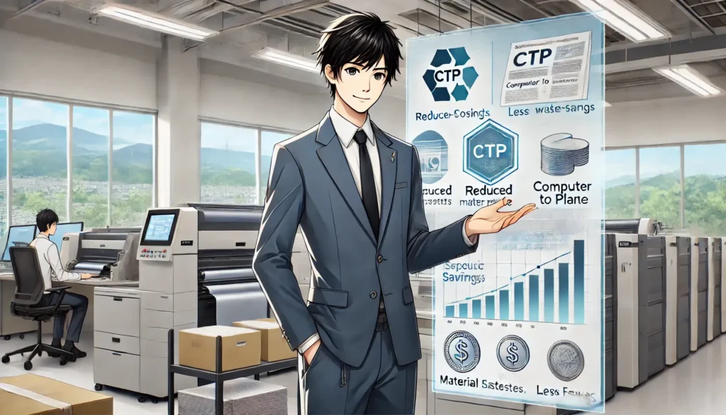 主なメリットは作業時間の短縮、コスト削減、品質の安定化です。さらに環境への負担が減る点も魅力で、多くの印刷会社が採用しています。