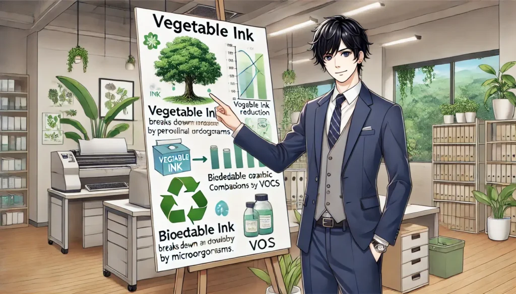 さらに印刷業界においては、人材育成や教育の観点からもベジタブルインキの活用は意味を持ちます。印刷を学ぶ学生や新たに業界に入る人たちにとって、環境配慮型の技術を理解し実践できることは、今後のキャリアにおいても大きな強みになります。教育現場でベジタブルインキを題材に取り上げることで、印刷と環境の関わりを学ぶ機会を提供でき、次世代の人材が持続可能な社会づくりに貢献できるようになります。