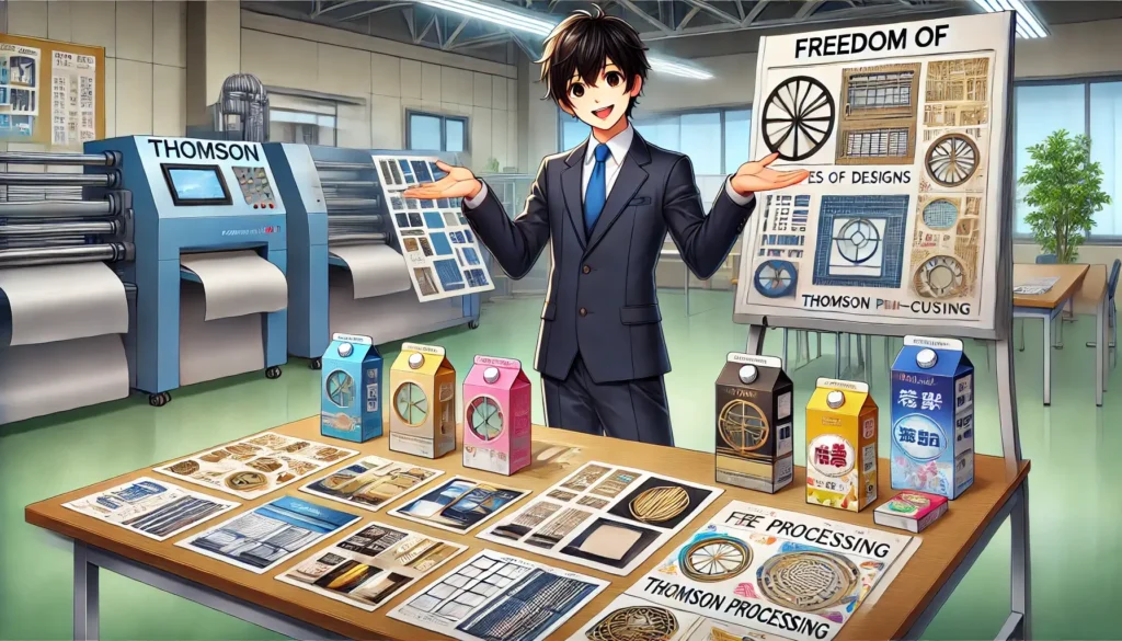 このように、トムソン加工はデザイン面での自由度が非常に高く、パッケージや印刷物の価値を大きく引き上げる力を持っています。単なる装飾にとどまらず、商品の機能性や環境配慮、ブランドイメージの強化といった多様な目的に応えられるため、多くの業界で選ばれ続けているのです。
