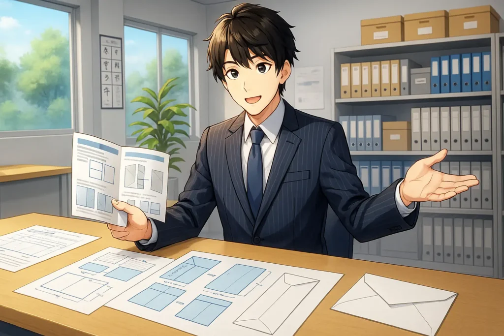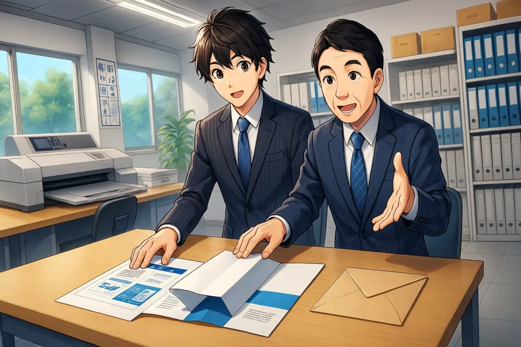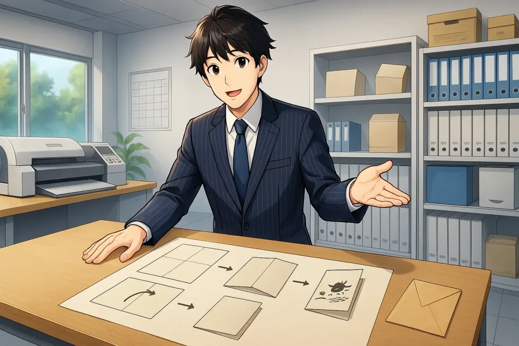 発注や制作を進める際には、印刷会社との連携も欠かせません。サイズ、用紙、折り仕様、納期、入稿形式を明確に伝え、束見本や簡易サンプルで仕上がりを確認することで、ズレや誤解を防げます。印刷後の封入や発送まで依頼する場合は、方向や宛名位置などの細部も事前に共有しておくと安心です。担当者との密なコミュニケーションが、全体のスケジュールと品質を安定させる土台になります。