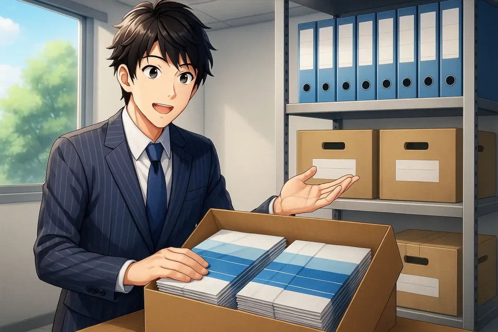 余裕を持って多めに印刷し、折り加工後も適切な環境で保管しておくことで、イベントやキャンペーンのたびに活用できます。保管時の湿度や温度管理、折り目の維持、角の保護など、少しの手間を加えるだけで、長期間きれいな状態を保つことが可能です。