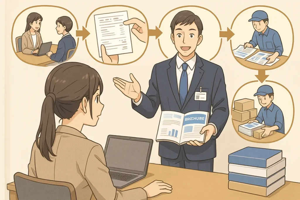 角背の冊子を制作する際、仕上がりの美しさやコストだけでなく、全体の進行をスムーズに進めるための流れを理解しておくことは非常に大切です。制作の各段階で適切な準備と確認を行うことで、納期遅延や仕上がりのトラブルを防ぎ、安心して冊子を完成させることができます。ここでは、発注から納品までの一連の流れを、実務に即した形でわかりやすく紹介していきます。