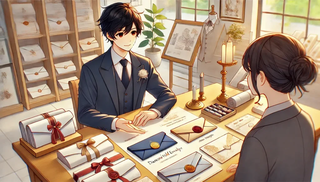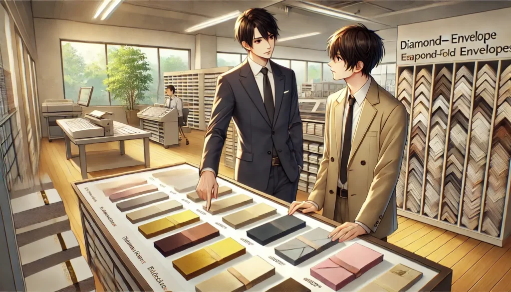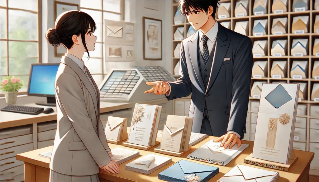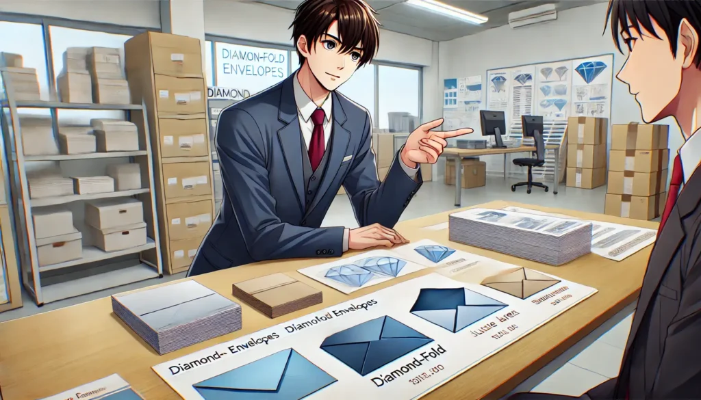 本記事を読むことで、初めてダイヤモンド貼り封筒を制作する方でも、構造の理解からデザイン、発注、仕上げまでの一連の流れを把握でき、実践的に活用できるようになります。フォーマルな印象を演出したいと考えている方や、封筒のデザインをひと工夫したい方にとって、役立つ知識が詰まった内容です。