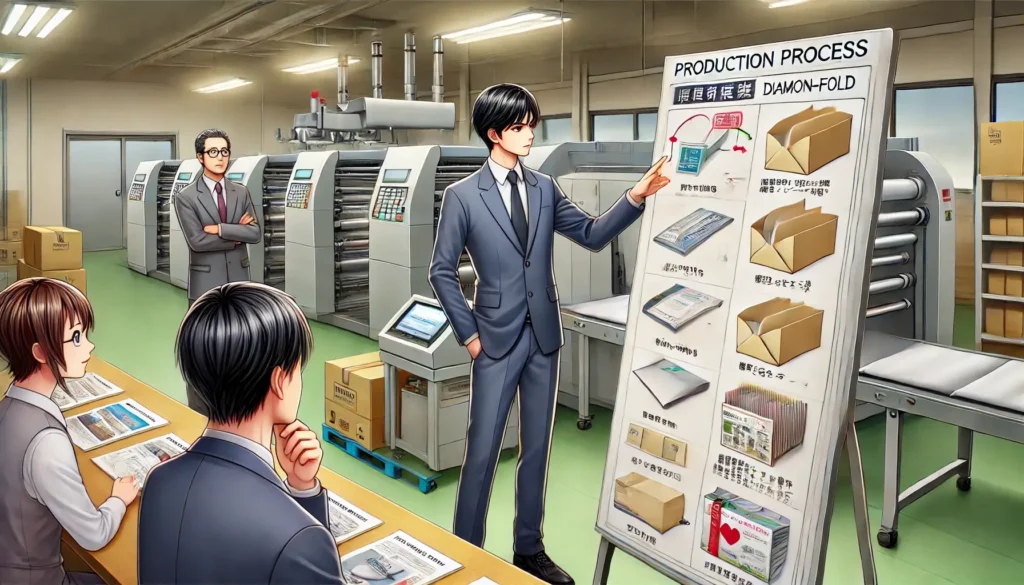 見積もり段階では、印刷費・加工費・紙代・納品費など、すべてのコスト項目を明確にしておくとトラブルを防げます。特に、ダイヤモンド貼りは特殊形状のため、展開図の作成費や型代が別途かかるケースがあります。見積書にすべての項目が記載されているかを確認し、不明点があれば早めに質問しておくことが大切です。また、増刷や再発注の際に同じ型を使えるのかどうかも確認しておくと、次回のコストを抑えることができます。