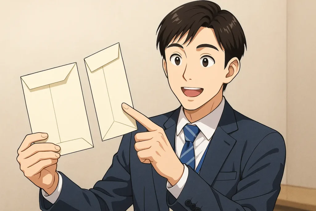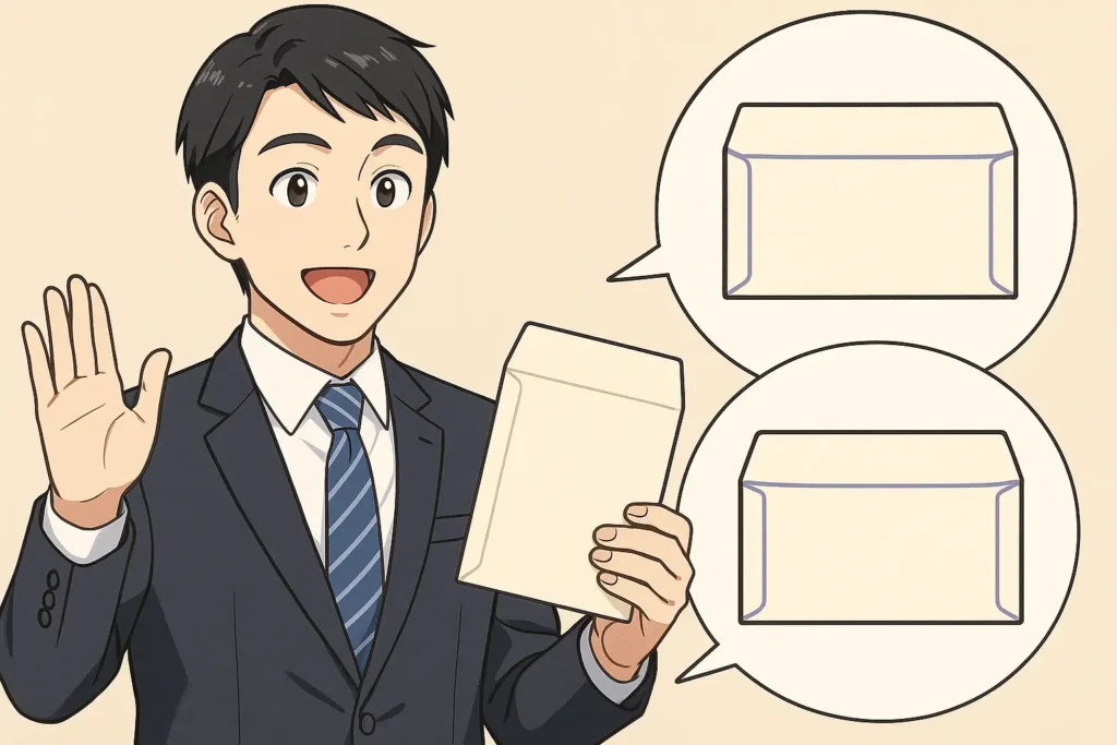 一方で、カマス貼りを理解する際に誤解されやすい点として、封筒の種類による区別があります。縦長の和封筒や長形封筒では、センター貼りやスミ貼りといった別の貼り方が採用されることが多く、カマス貼りは主に横長の洋形封筒に使われるという特徴があります。そのため、封筒を選ぶときにはまず用途を考え、横向きで使用する書類や案内物がある場合にカマス貼り封筒を検討すると良いでしょう。書類を折らずに入れたい場合や、DMを見栄え良く届けたい場合などに最適です。