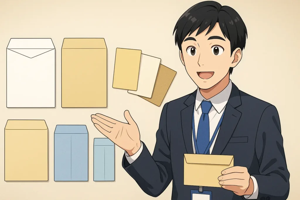 カマス貼り封筒を制作・発注する際には、貼り方そのものだけでなく、サイズや用紙の選び方も非常に大切です。サイズや紙質は、仕上がりの印象や使い勝手を大きく左右する要素であり、適切な仕様を決めることで封筒の役割を最大限に引き出すことができます。ここでは、カマス貼り封筒でよく使われるサイズの特徴や、用途に応じた用紙選び、そして実際に仕様を決める際に意識したいポイントについて、初心者にもわかりやすく丁寧に解説していきます。