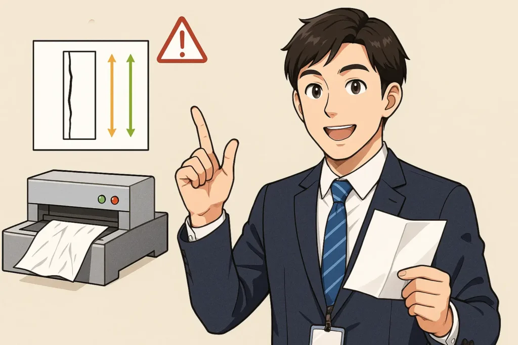 このように、折る・曲げる・裂く・湿らせる・読むという複数の視点を組み合わせることで、現場でも短時間で紙目を正確に見分けることができます。一つの方法だけで判断せず、複数の方法で同じ結果を確認することで、逆目を避けたい案件でも迷いなく判断できるようになります。地道に確認を積み重ねる習慣が、折り割れや皺の発生を防ぎ、印刷物の仕上がりを安定させることにつながります。