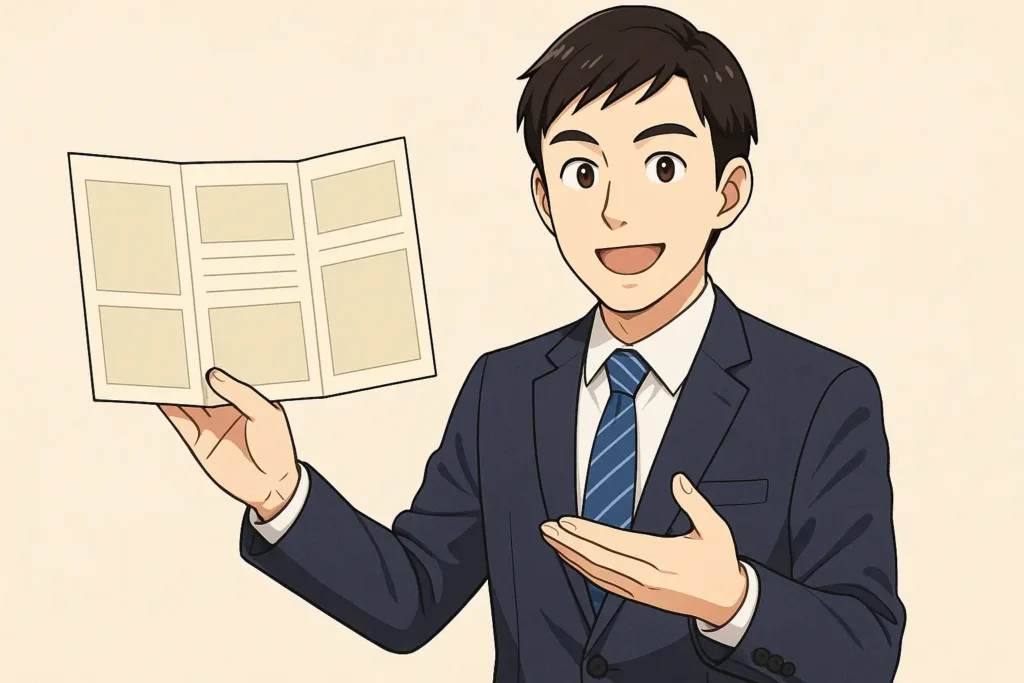 用途の面でも、巻き三つ折りとZ折りには明確な違いがあります。巻き三つ折りは、落ち着いた印象を与えやすく、表紙から順に情報をめくって見せたい場合に適しています。たとえば、商品カタログや会社案内、サービスの説明資料など、順を追って丁寧に内容を伝えたい印刷物に向いています。また、折りたたんだ状態で表紙がしっかり閉じるため、ポスティングや配布の際に中身が見えにくく、清潔感や安心感を与えるという利点もあります。