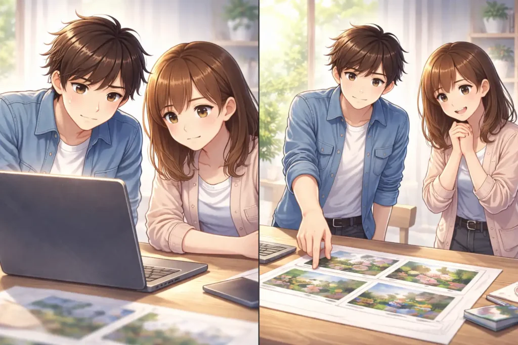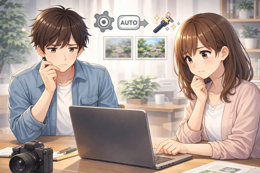 撮影がうまくいっていても、画像編集やデザイン作業の段階で、いつの間にか眠い画像になってしまうことはよくあります。むしろ、編集に手を加えることで安心してしまい、結果としてメリハリを失ってしまうケースも少なくありません。ここでは、編集やデザインの作業中に起こりやすい流れを追いながら、なぜ眠い画像が生まれてしまうのかを丁寧に説明していきます。