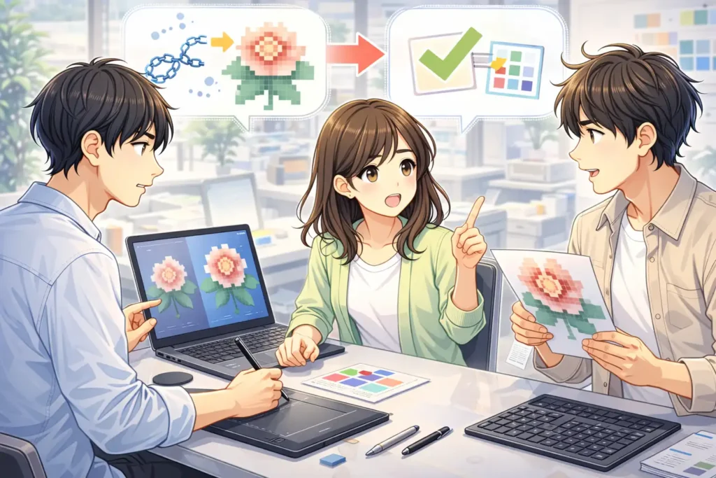 一般の読者にとっても、ラスタライズは決して遠い世界の話ではありません。資料作成、画像の共有、印刷物の入稿など、身近な場面で役立つ考え方です。仕組みを少し知るだけで、なぜそうするのかが理解でき、作業への不安も減っていきます。