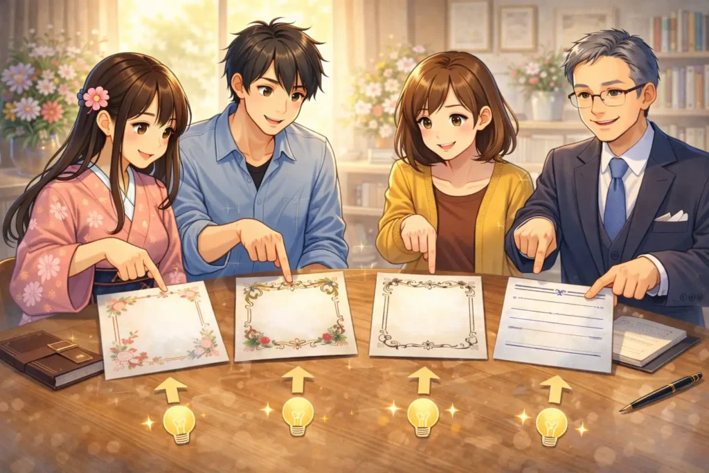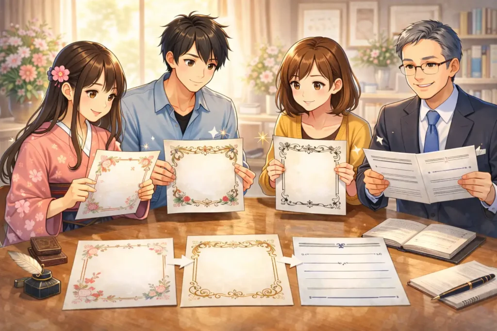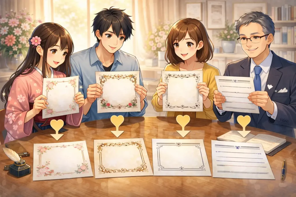 はい、飾り罫は選び方によって個性を表現できます。和風が好きな人、シンプルが好きな人など、その好みが自然と表れるため、飾り罫は自分らしさを表現する要素のひとつになります。