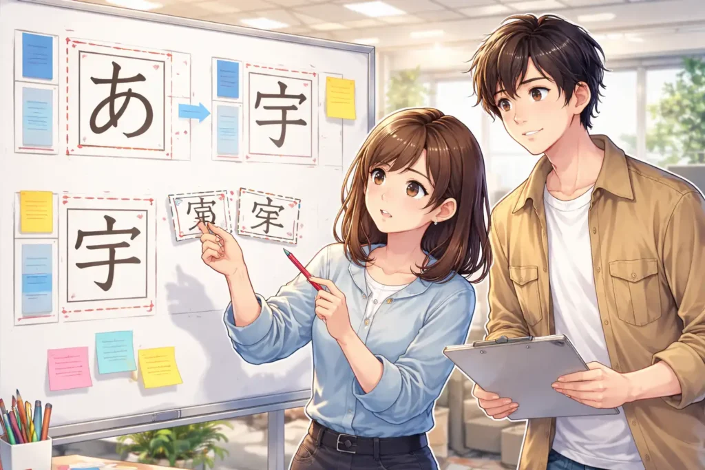 字面とは、文字の顔のようなものです。人の顔が一人ひとり違うように、文字の字面もそれぞれ異なる表情を持っています。その表情を大切に並べていくことで、文章はより自然で心地よいものになります。ツメ組みを理解するためにも、まずは字面という存在をしっかり意識することが、とても大切な一歩になります。