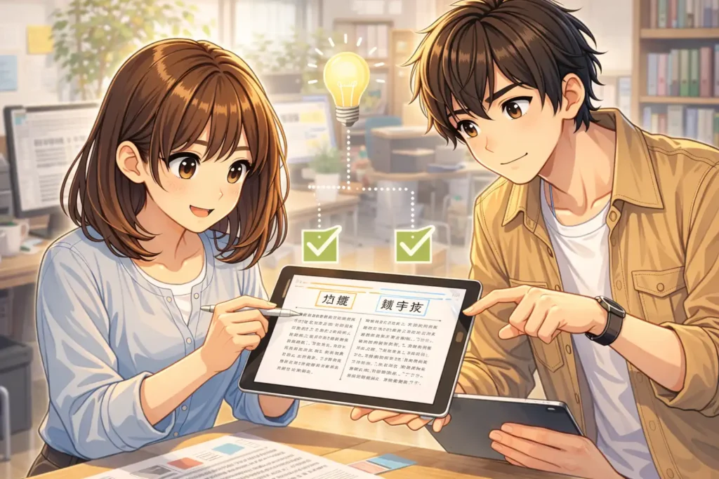 また、ツメ組みを知ることで、他人の文章に対する見方も変わります。これまで内容だけで評価していた文章を、文字の並び方という視点でも見られるようになります。その結果、なぜ読みやすいと感じたのか、なぜ途中で読むのをやめたくなったのか、その理由を自分なりに説明できるようになります。これは、文章を読む力が一段階深まった状態だと言えます。