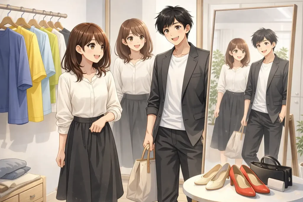 小物に無彩色を取り入れるだけでも効果があります。派手な色の服を着るときでも、靴やバッグを黒や白にすると全体が引き締まります。私も明るい色のワンピースを着るときは、必ず黒の靴を合わせるようにしています。それだけでまとまりが出て安心して外出できます。