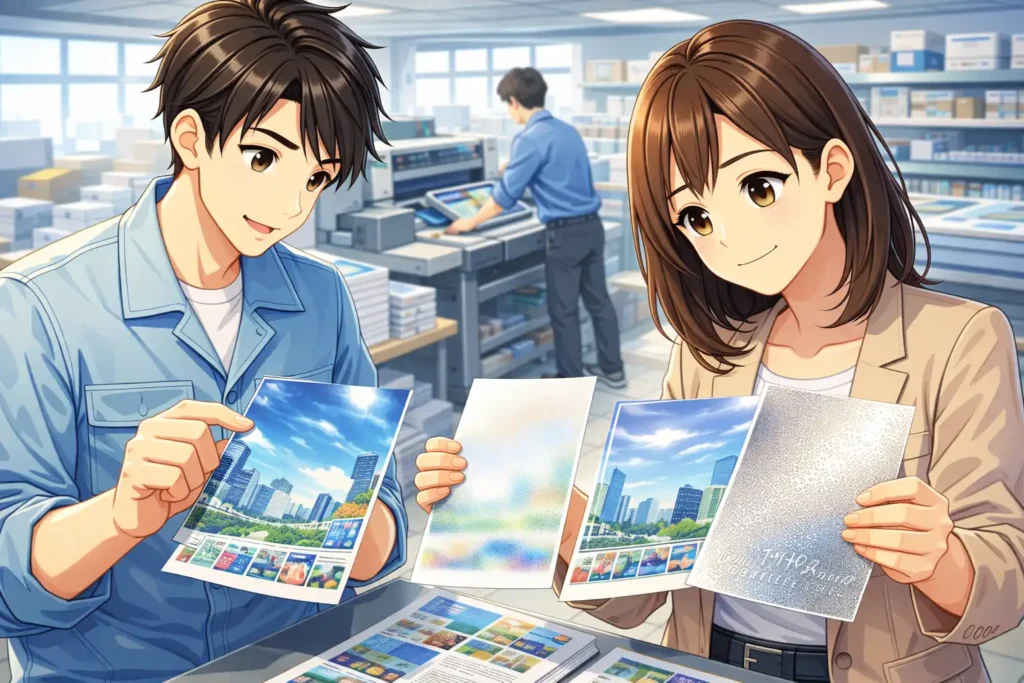 初心者でも問題なく指定できます。わからない場合は、用途や目的を伝えることで印刷会社が適切な仕上げ方法を提案してくれます。たとえば「高級感を出したい」「読みやすくしたい」といった要望を伝えるだけでも十分です。相談しながら決めることで、失敗を防ぎやすくなります。