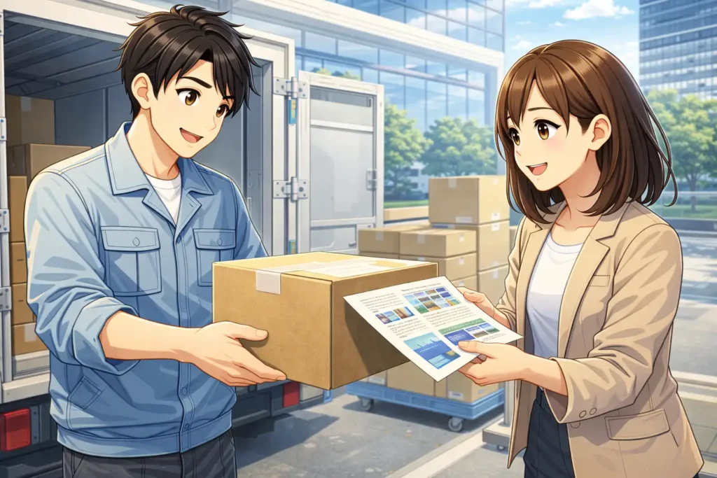 その後、指定された納品先に向けて発送されます。企業の本社や店舗、イベント会場など、納品先はさまざまです。場合によっては複数の場所に分けて送ることもあります。そのため、数量や送り先を間違えないよう、伝票の確認も慎重に行われます。