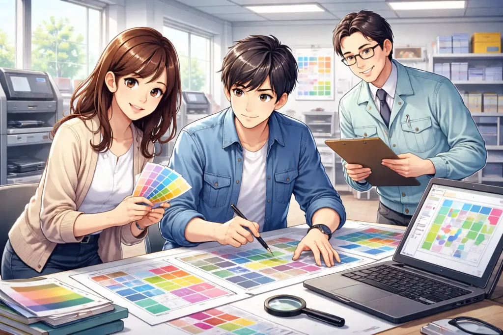色味や仕上がりにこだわりがある場合は、事前にしっかり伝えることも安心につながります。イメージしている色や雰囲気を共有することで、プリプレス工程での調整がよりスムーズになります。可能であれば参考になる印刷物や画像を見せるのも良い方法です。