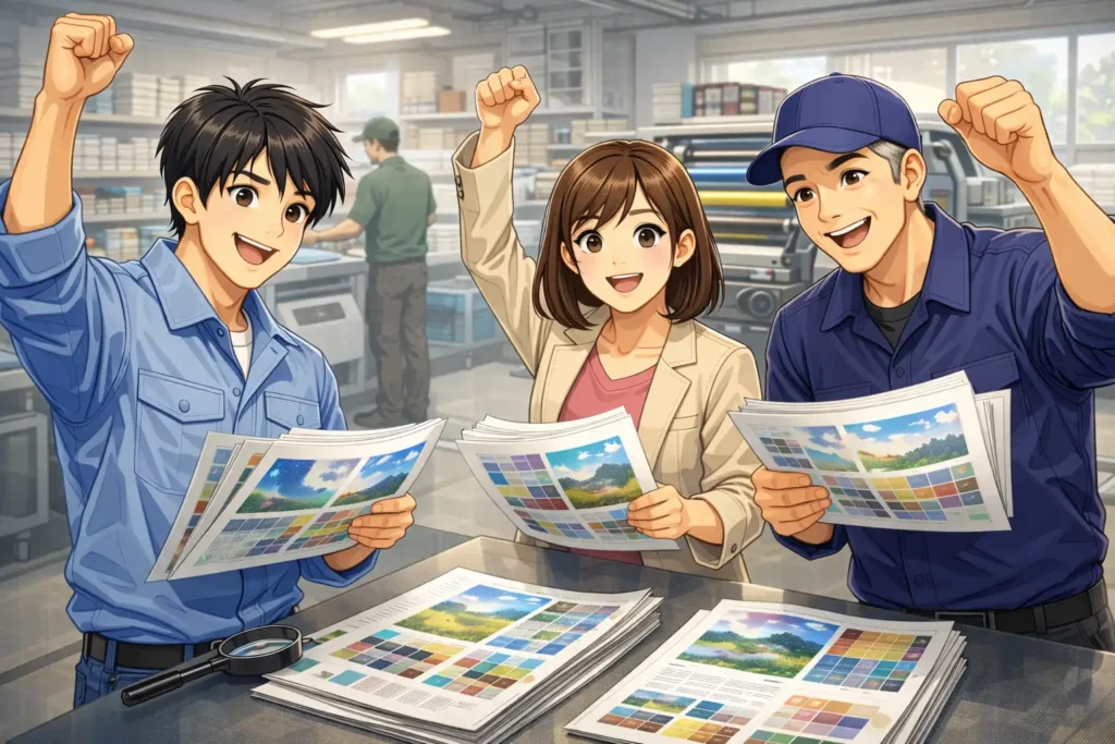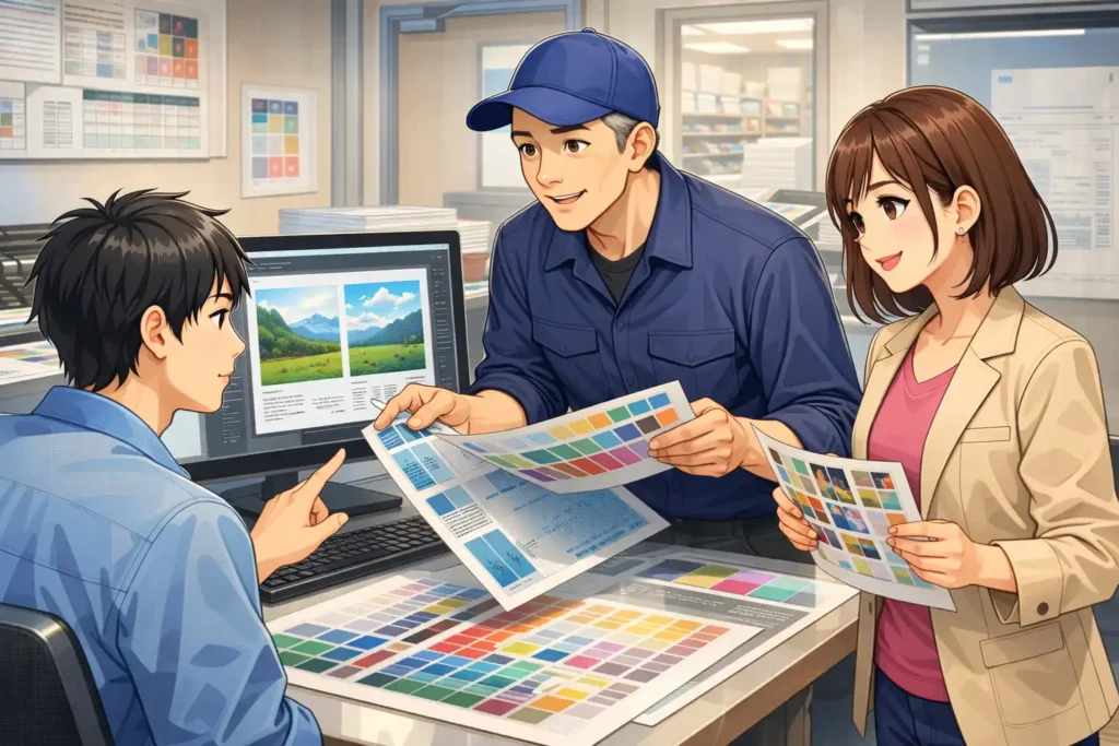 色の違いや納期の理由が理解できるようになり、印刷会社とのやり取りがスムーズになります。希望する仕上がりを具体的に伝えやすくなり、トラブルも減らせます。また無駄な修正が減ることで、コストを抑えることにもつながります。