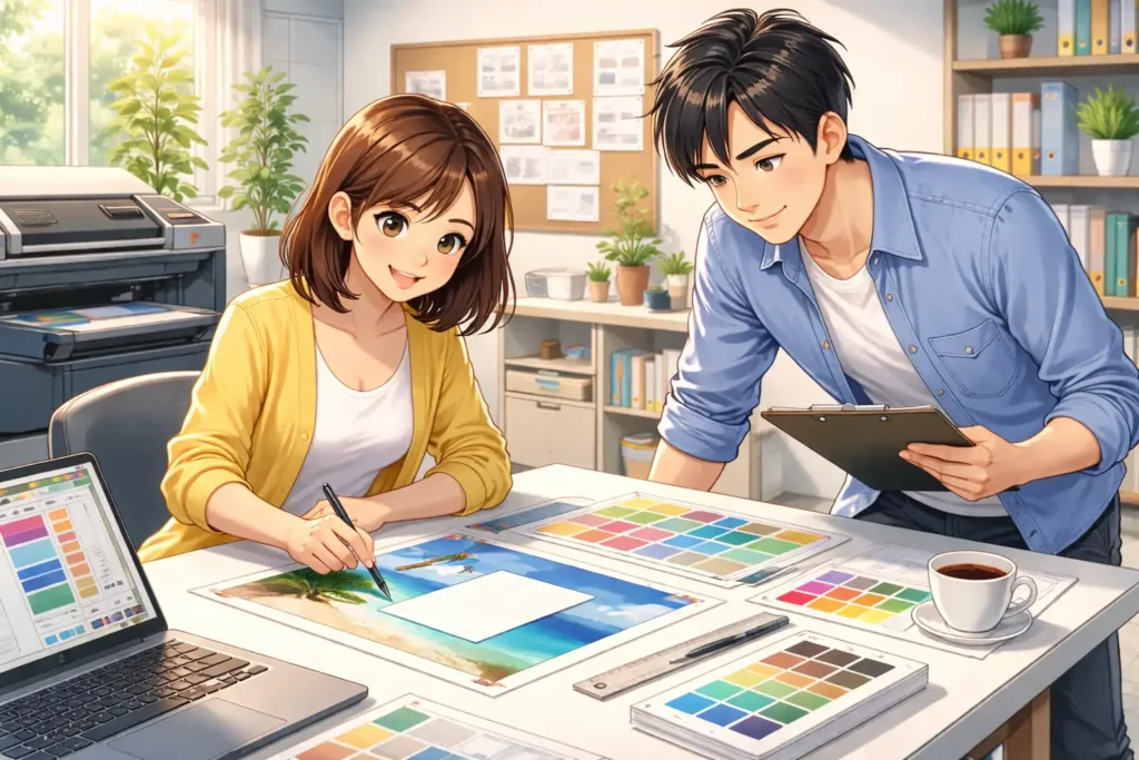 印刷会社とのやり取りを重ねるうちに、サイズ設定の感覚も自然と身についていきます。最初は慎重に確認しながら進め、慣れてきたらスムーズに作業できるようになるでしょう。
