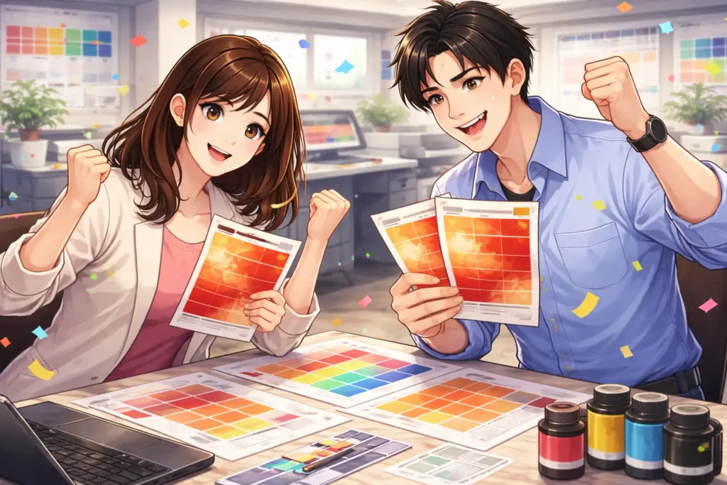 金赤は目立つ色である分、少しの違いが大きく感じられます。だからこそ、数値、見本、色校正という基本を丁寧に積み重ねることが大切です。これらを実践することで、印刷会社との信頼関係も深まり、次回以降のやり取りもスムーズになります。