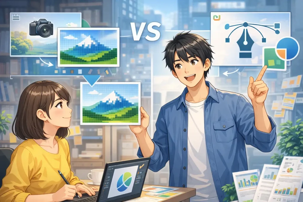 パソコンやスマートフォンで画像を扱う機会は年々増えていますが、その中で「ベクター画像」という言葉を聞いたことがある方は意外と多くありません。ロゴやアイコン、イラスト制作などに関わる人にとっては身近な存在ですが、普段は写真やスクリーンショットを使うことが多い一般の方にとっては少し専門的に感じるかもしれません。そこでここでは、初めて知る方でも無理なく理解できるように、ベクター画像の基本をやさしく丁寧に解説していきます。