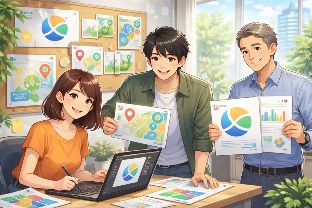 地図や図表も代表的な活用例です。地図は拡大縮小する機会が多く、線や文字の読みやすさが求められます。ベクター画像ならサイズを変えても視認性が保たれるため、地図やグラフ、説明図などの制作にも適しています。